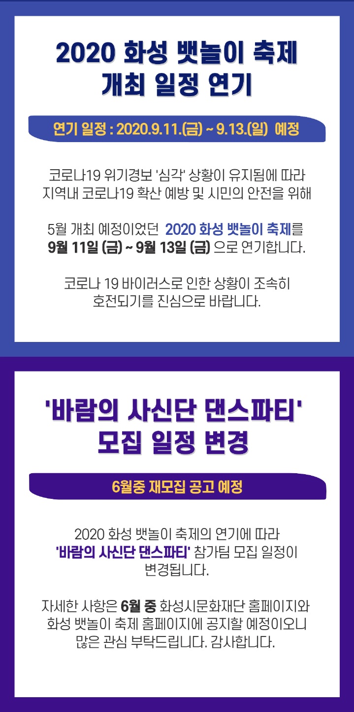 2020년 5월 개최 예정이었던 2020 화성 뱃놀이 축제를