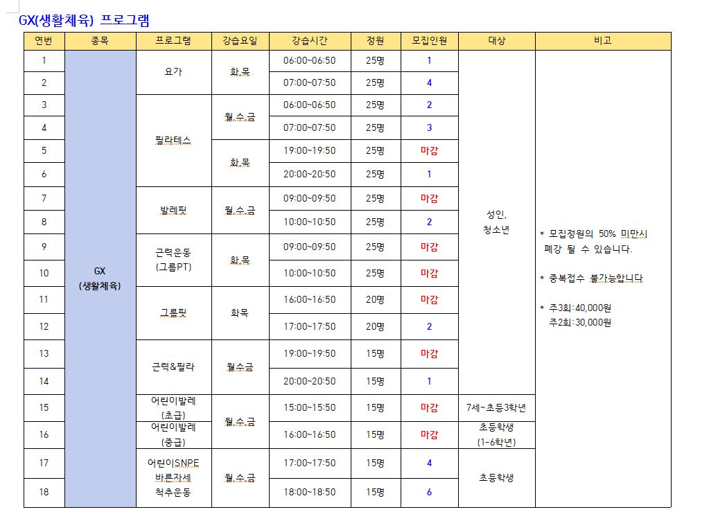 [스포츠] 3월 스포츠 프로그램 추가모집 안내