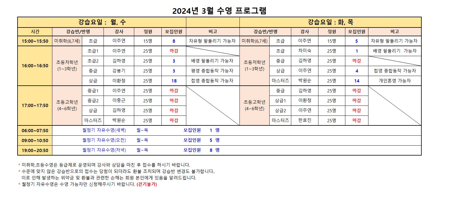 2024년 3월 스포츠 프로그램 추가모집 안내