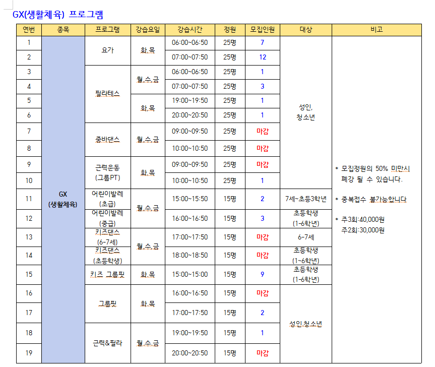 [스포츠] 7월 스포츠 프로그램 추가모집 안내