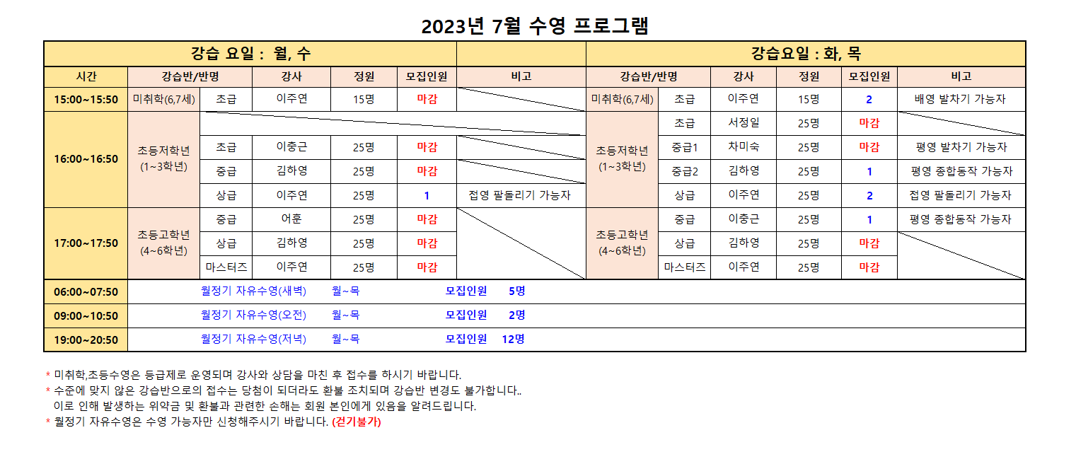 2023년 7월 스포츠 프로그램 추가모집 안내