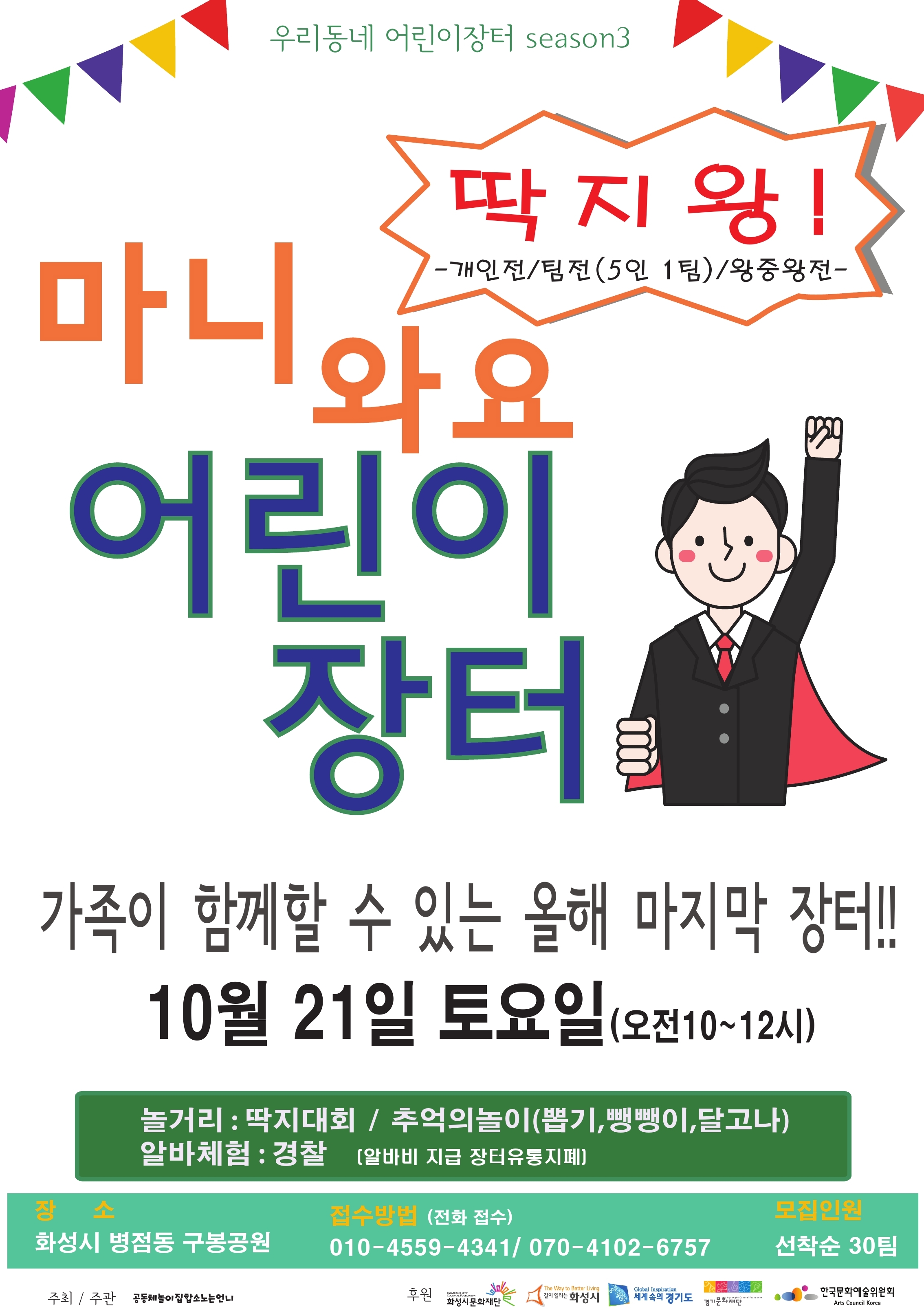 [문화사업팀] 2017 문화예술육성지원사업 선정사업 <마니와요 어린이 장터> 작성자 방은지 작성일 2017년 10월 12일 13시 22분 19초 조회 1,924 10월_21일_어린이장터_(2).jpg [ Size : 1.25MB, Down : 301 ] 미리보기 다운로드 목록보기