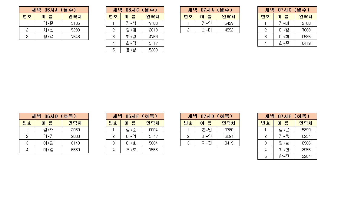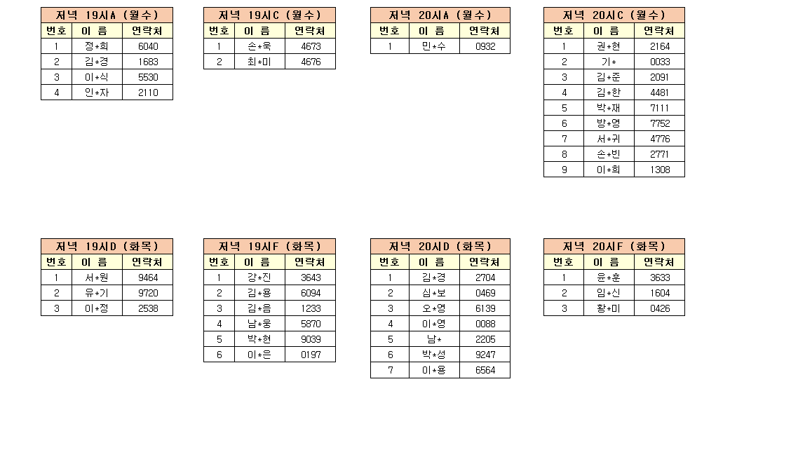 -강습반명, 성명, 전화번호 뒷자리, 강습요일을 확인하시고 강습에 참여해 주시기 바랍니다.