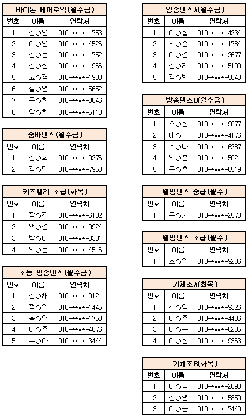 7월 스포츠 프로그램 추첨 결과입니다.