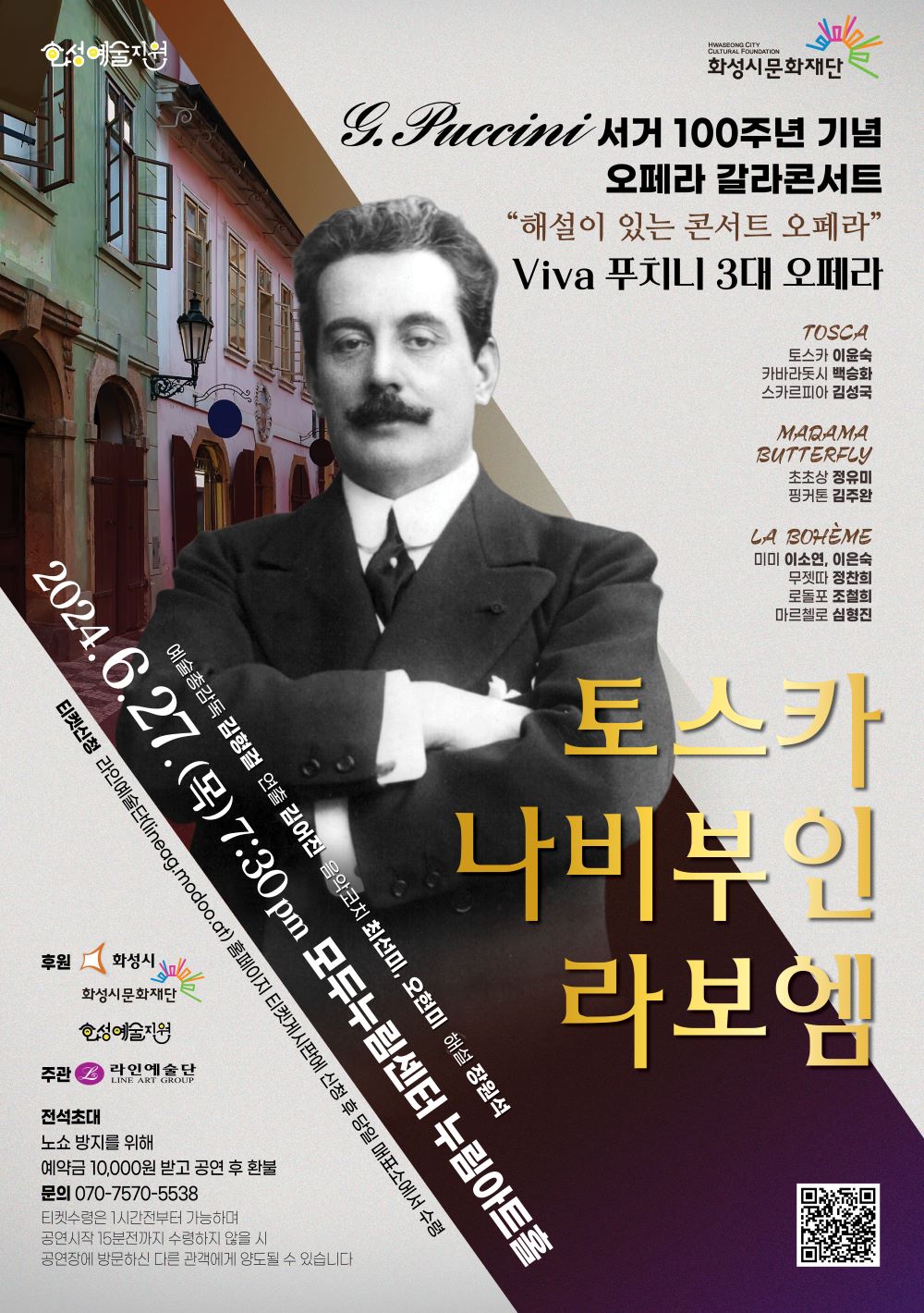 [2024년 화성예술활동지원] 6/27(목) 라인예술단 - < 해설이 있는 콘서트 오페라 - Viva 푸치니 3대 오페라>