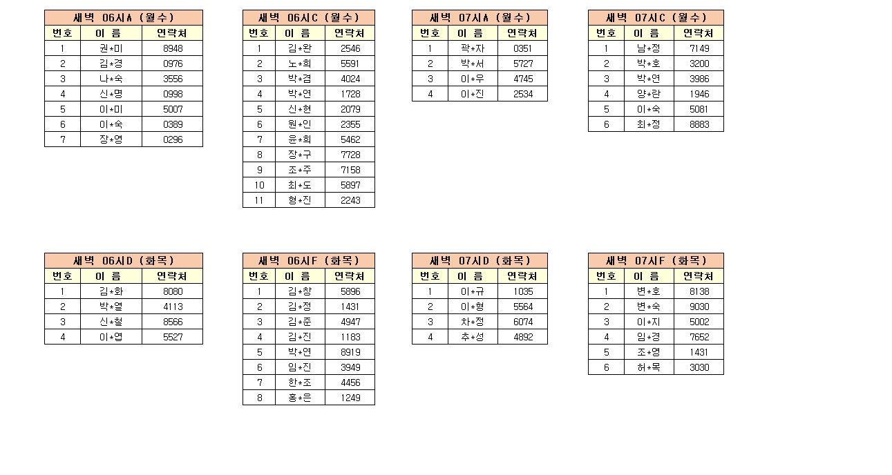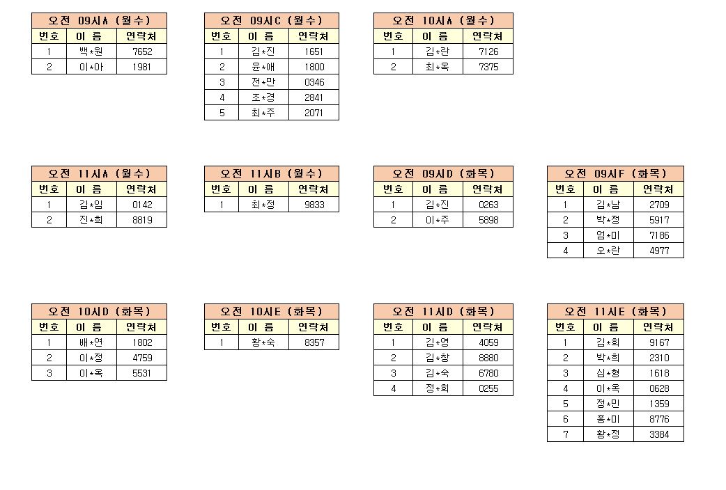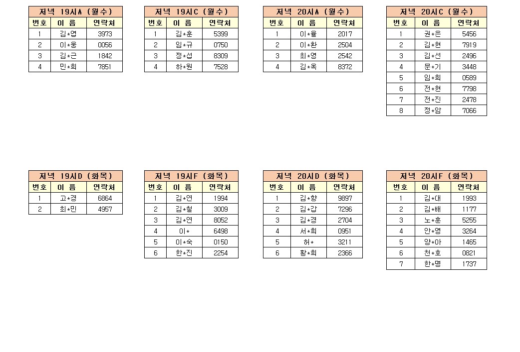 - 강습반명, 성명, 전화번호 뒷자리, 강습요일을 확인하시고 강습에 참여해 주시기 바랍니다.