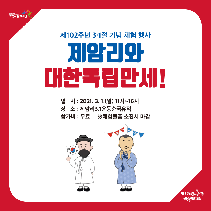 제102주년 3.1 기념 체험 행사 『제암리와 대한 독립 만세!』 를 진행 예정입니다.
