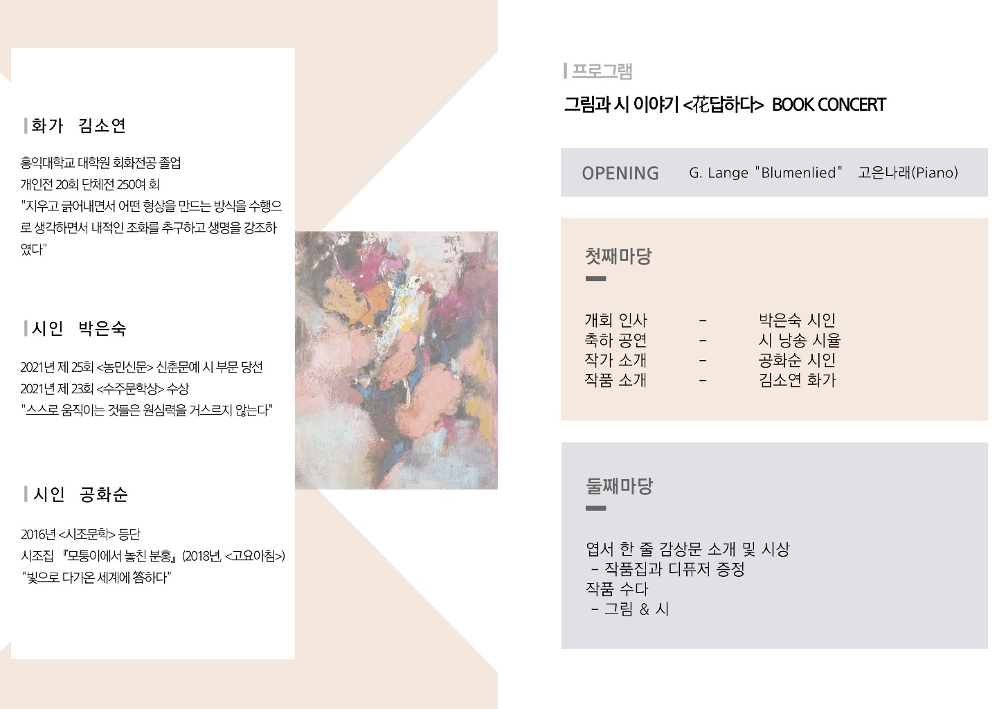 오프닝 행사로 피아노 연주와 시낭송이 어우러져 감성의 북 콘서트가 될 것이다.
