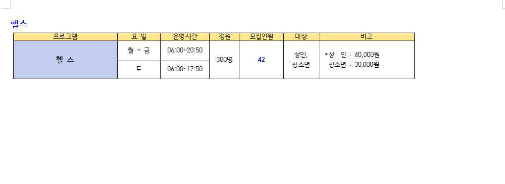 ● 모집프로그램: 수영(미취학. 초등저학년. 초등고학년, 월정기자유수영), GX(생활체육), 헬스
