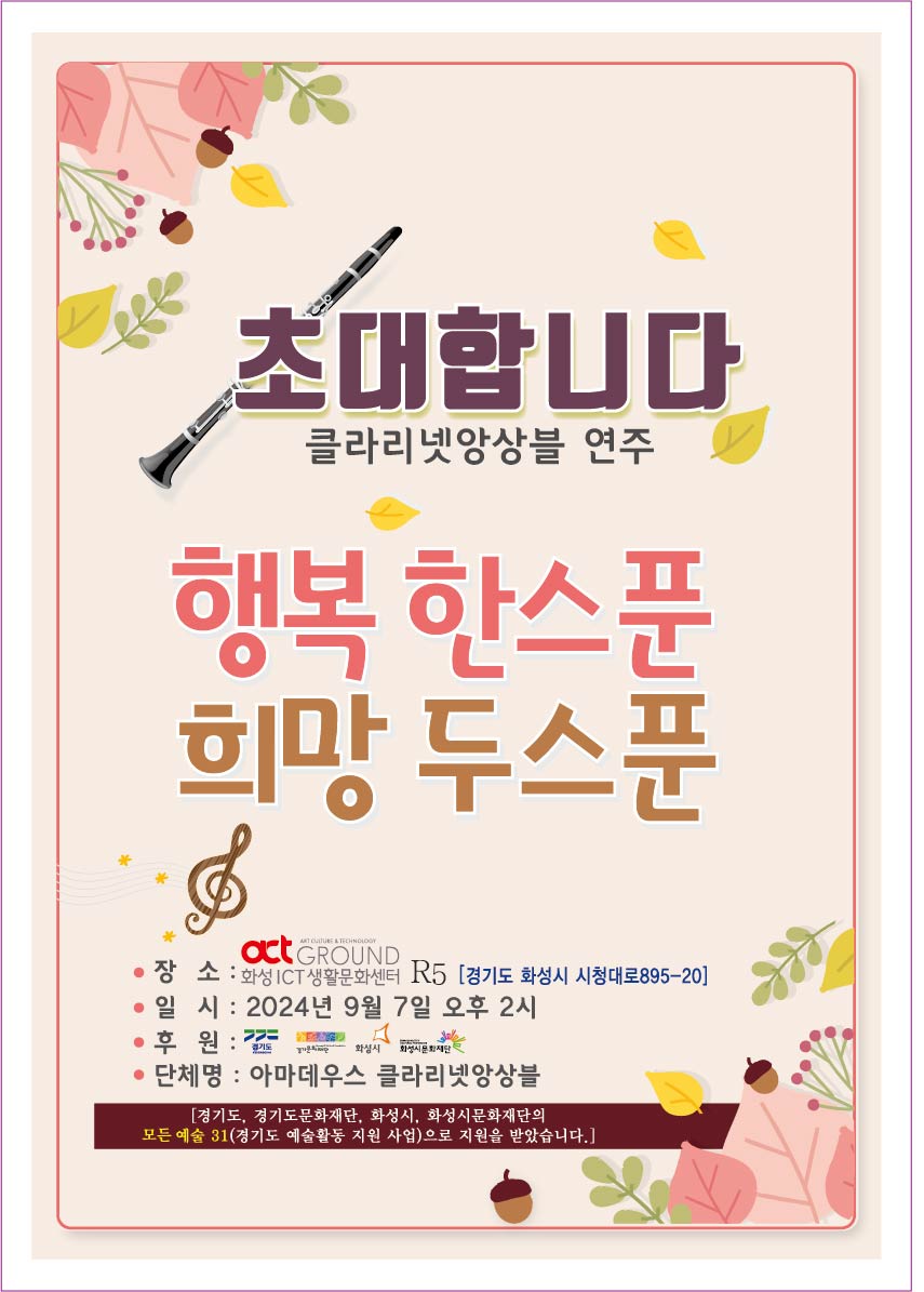 [2024년 모든예술31-화성] 9.7.(토) 14:00 아마데우스 클라리넷 앙상블 <행복 한스푼 희망 두스푼>