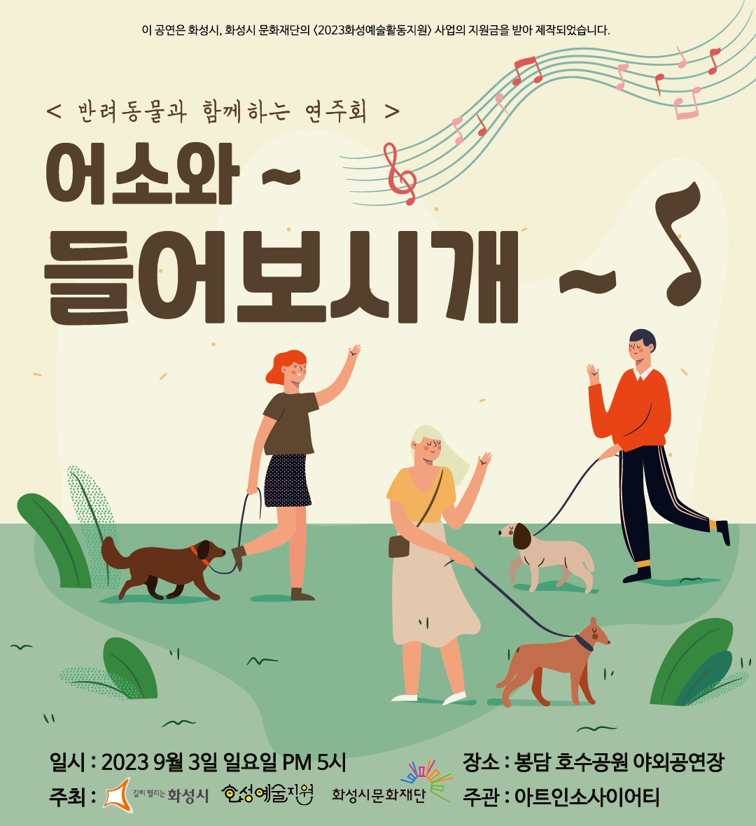 [화성예술지원] 9/3(일) 아트인소사이어티 - 반려동물과 함께하는 콘서트 <어소와~ 들어보시개~> 공연 안내 ㅣ무료 현장관람