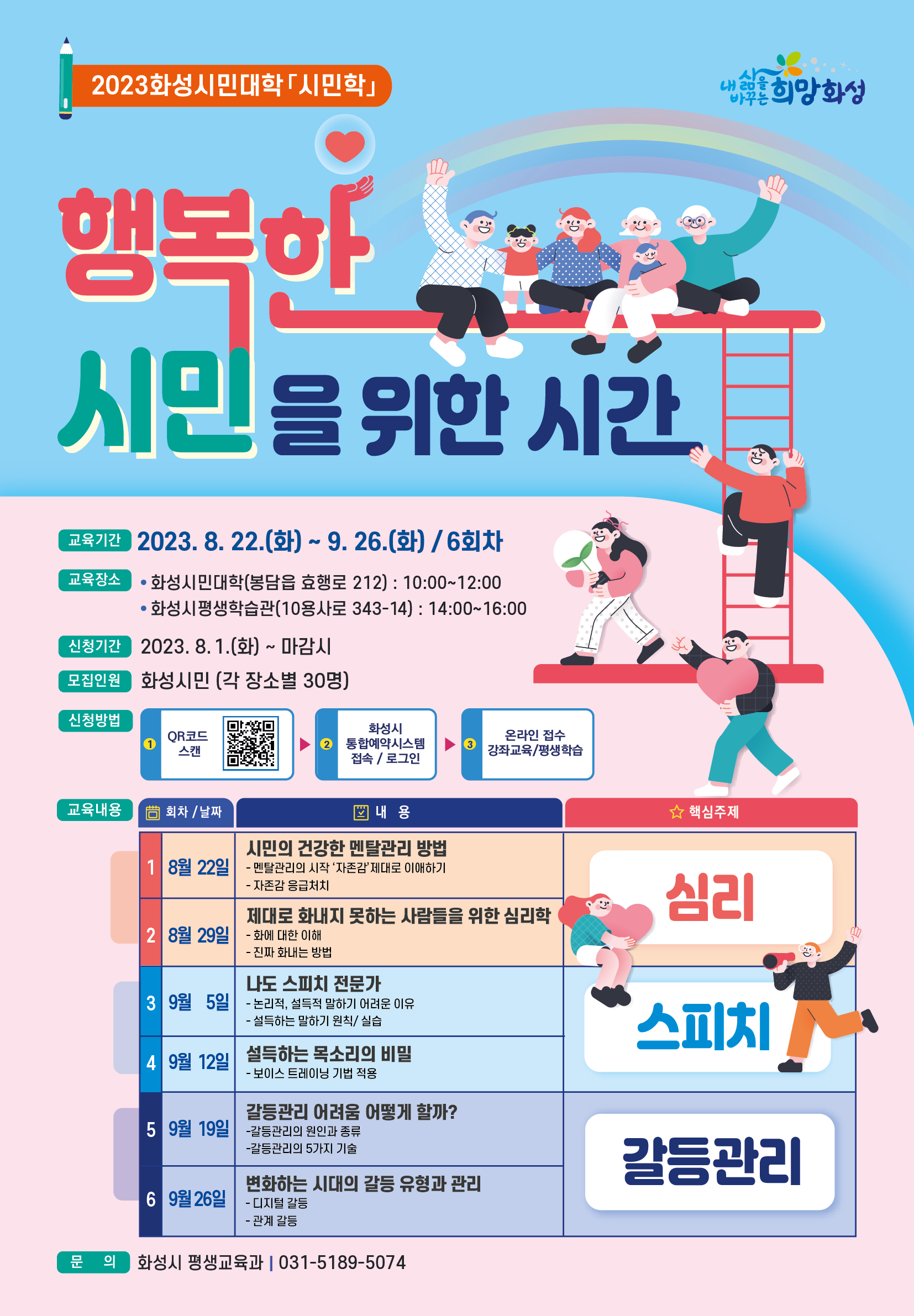 2023년 화성시민대학 '시민학' 2차 수강생 모집 (8. 1.(화) ~ 8. 10.(목))