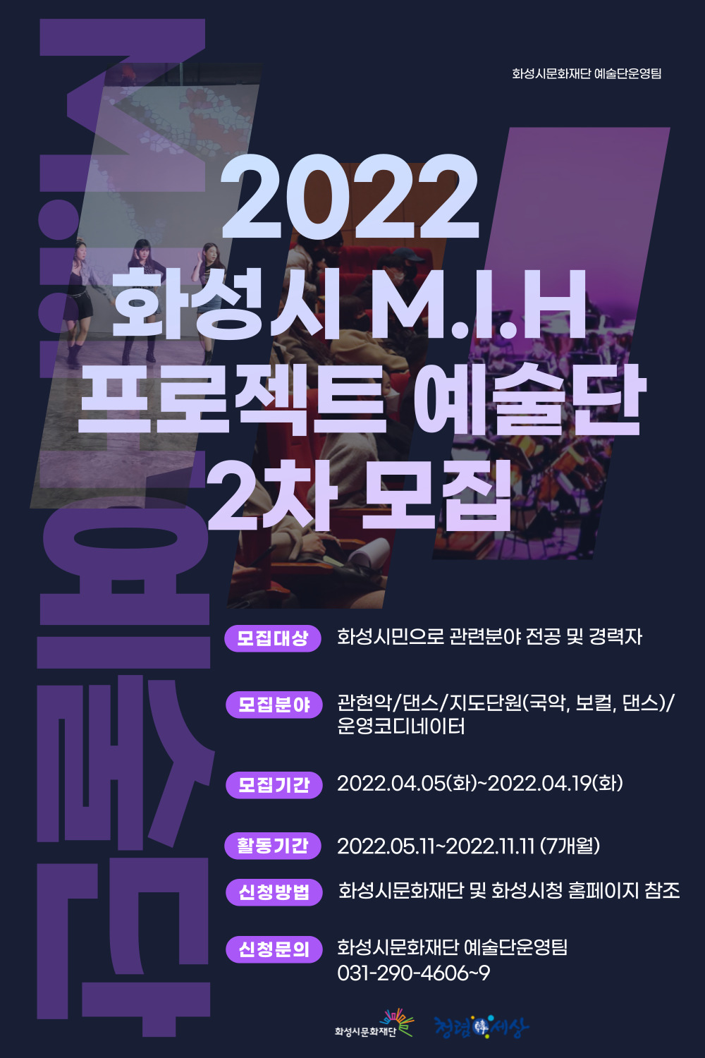 (재)화성시문화재단 2022년 화성시 M.I.H 프로젝트 예술단 기간제근로자 2차 채용