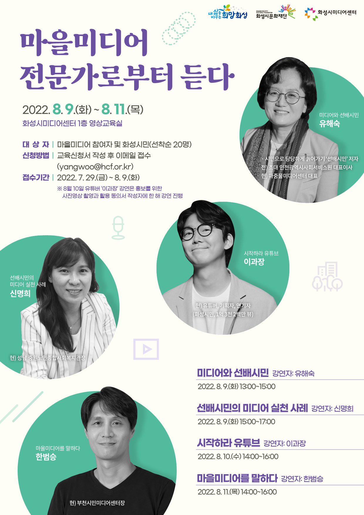 화성시미디어센터에서는 화성시민분들의 마을미디어 이해와 미디어 역량강화를 위해