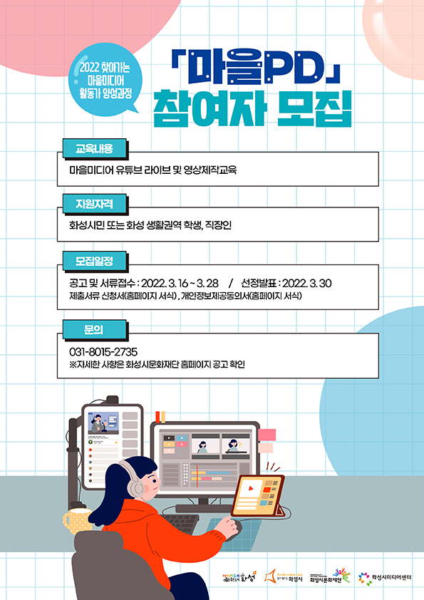 2022 찾아가는 마을미디어 활동가 양성과정 마을PD 참여자 모집 작성자 관리자 작성일 2022년 3월 16일 9시 28분 52초 조회 919 공고문.jpg [ Size : 1.32MB, Down : 991 ] 미리보기 다운로드 공고문 페이스북 A4.jpg [ Size : 314.92KB, Down : 892 ] 미리보기 다운로드 페이스북 A4 2. 지원신청서 서식.hwp [ Size : 19.5KB, Down : 256 ] 다운로드 2. 지원신청서 서식 목록보기