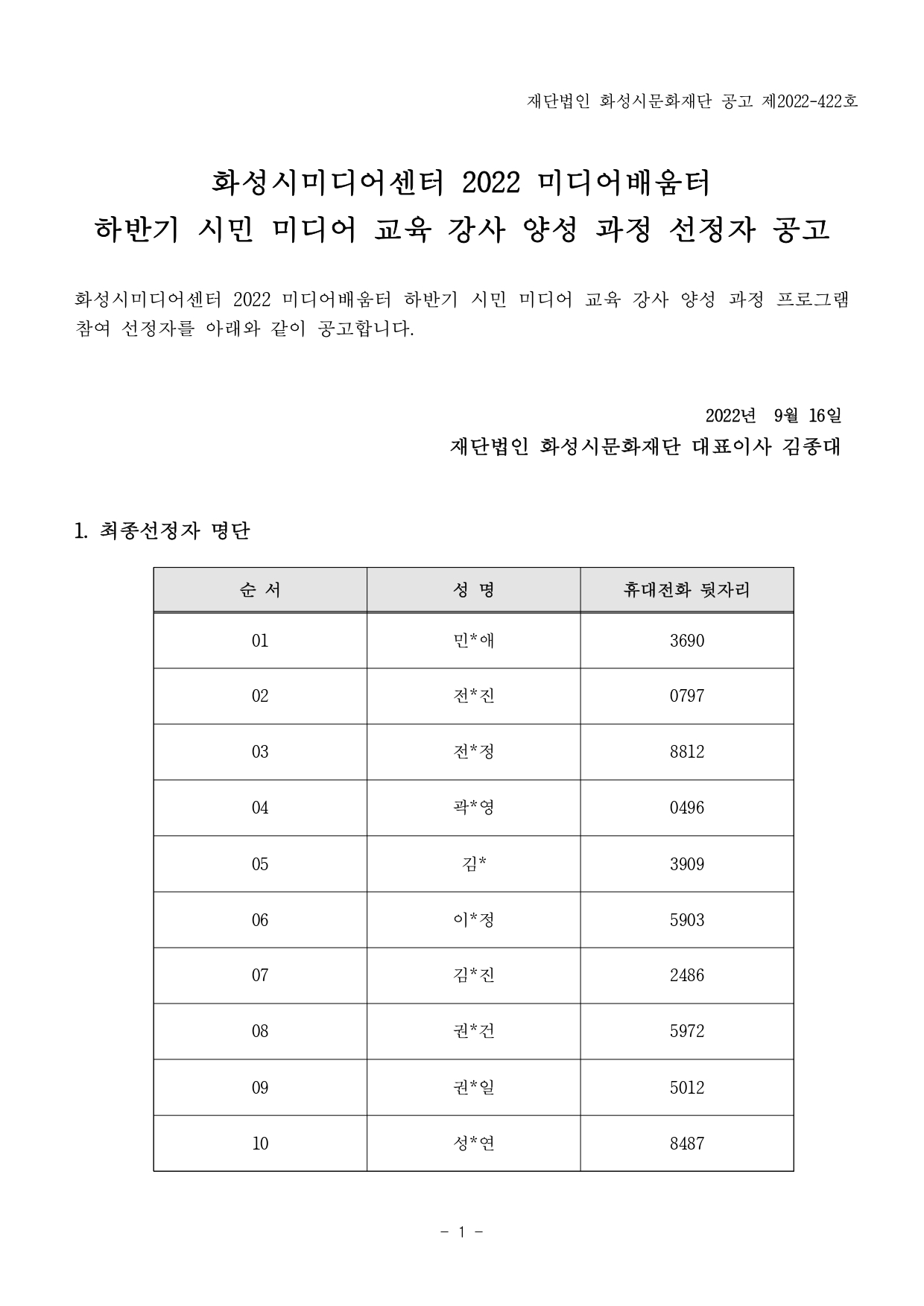 [붙임1] 2022 미디어배움터 하반기 시민 미디어 교육 강사 양성 과정 선정자 공고.pdf