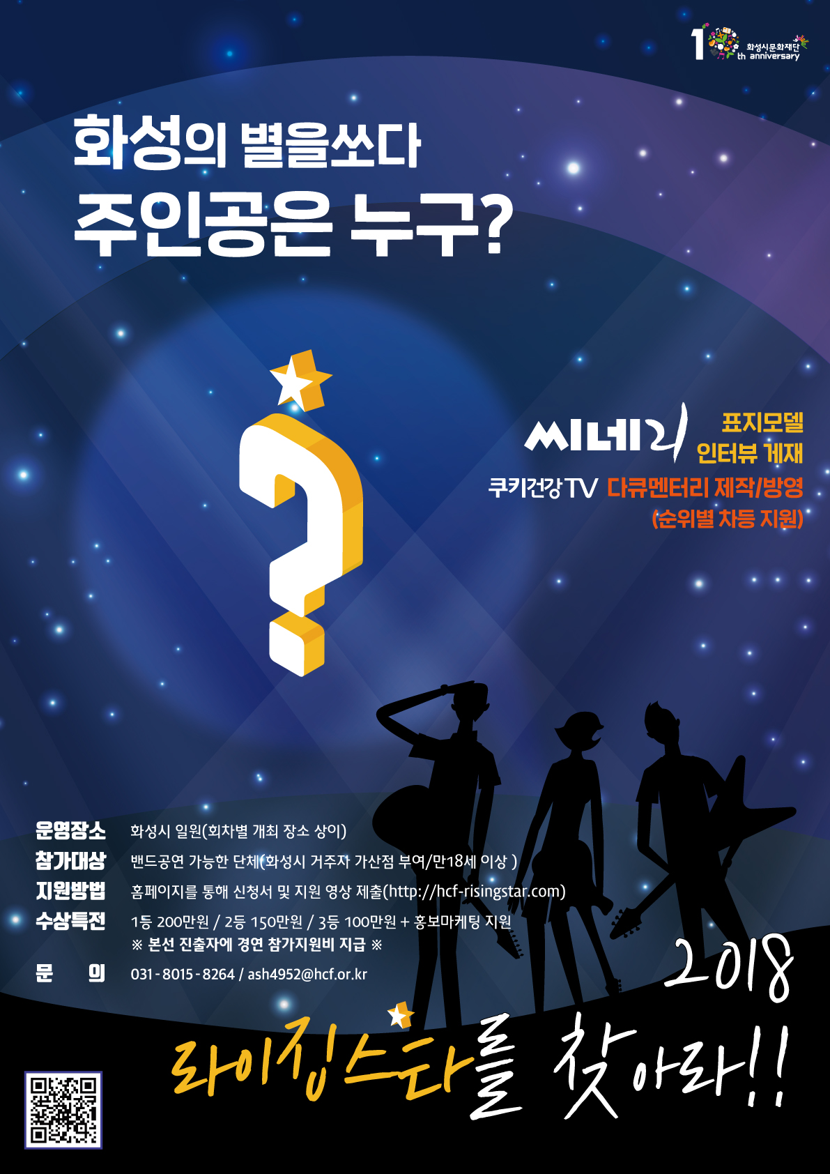 (재)화성시문화재단(대표이사 권영후)에서 주최하는 밴드경연대회 <2018 라이징스타를 찾아라>의 우승자 특전이 공개되었다.