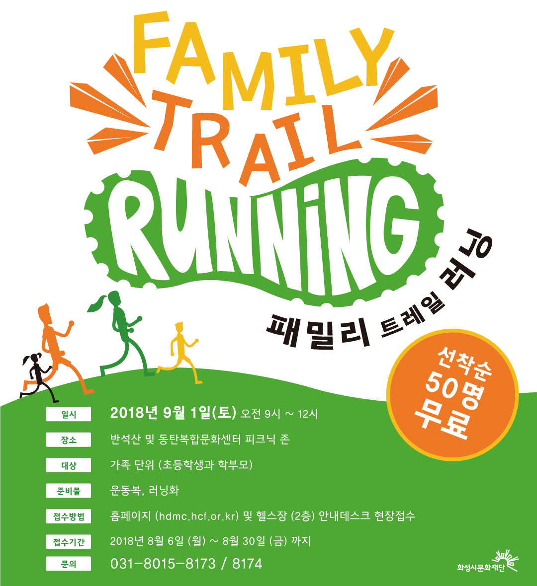 (재)화성시문화재단(대표이사 권영후) 동탄센터운영팀은 가을맞이 스포츠 특강으로 <패밀리 트레일 러닝>을 진행한다. 이에 오늘 6일부터 동탄복합문화센터 헬스장에서 선착순 50명 접수를 시작한다.