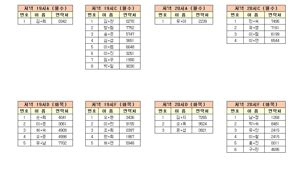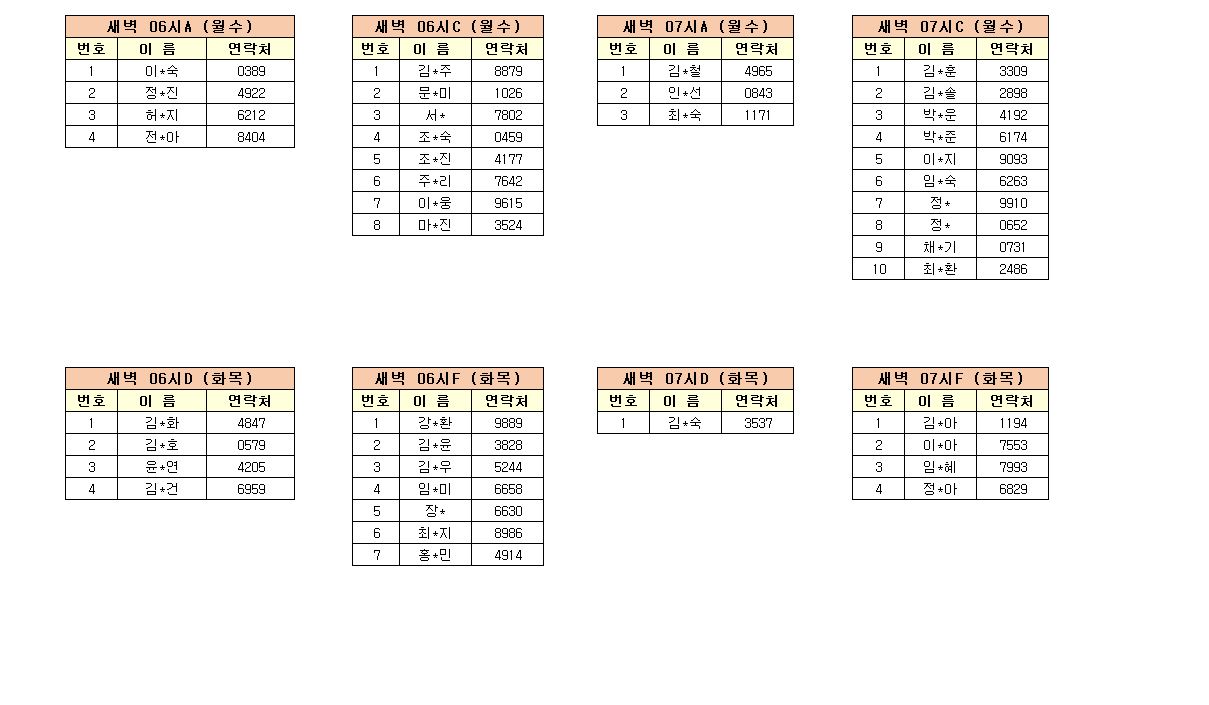 -강습반명, 성명, 전화번호 뒷자리, 강습요일을 확인하시고 강습에 참여해 주시기 바랍니다.