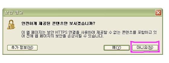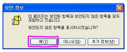 동탄복합문화센터 회원가입 혹은 결재진행시 보안경고에 따른 문제 해결