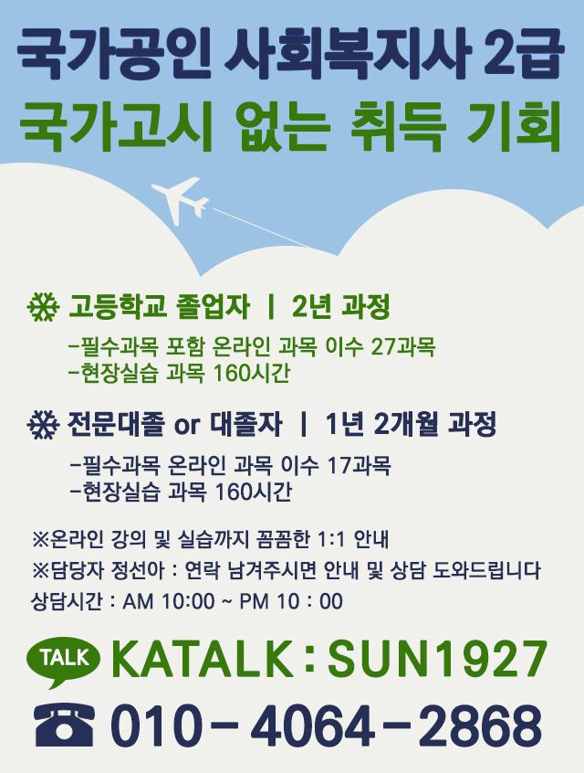 ★국가공인자격 사회복지사 2급 국가고시 시험없이 취득하는 법 안내(★(직장인 가능)