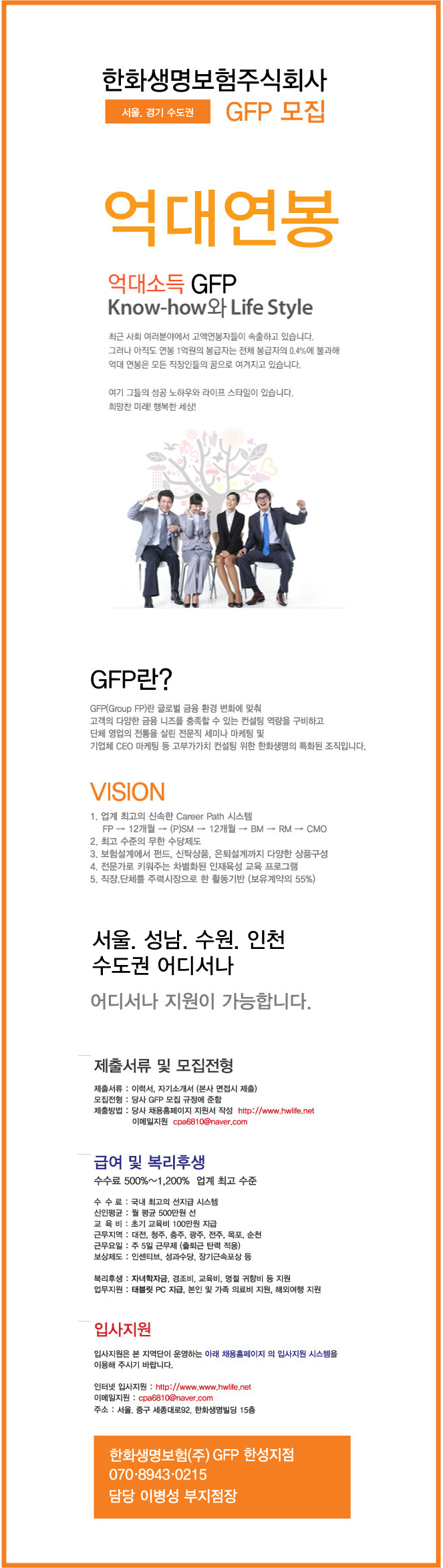 억대연봉의 꿈. 한화 GFP와 함께 이루세요.