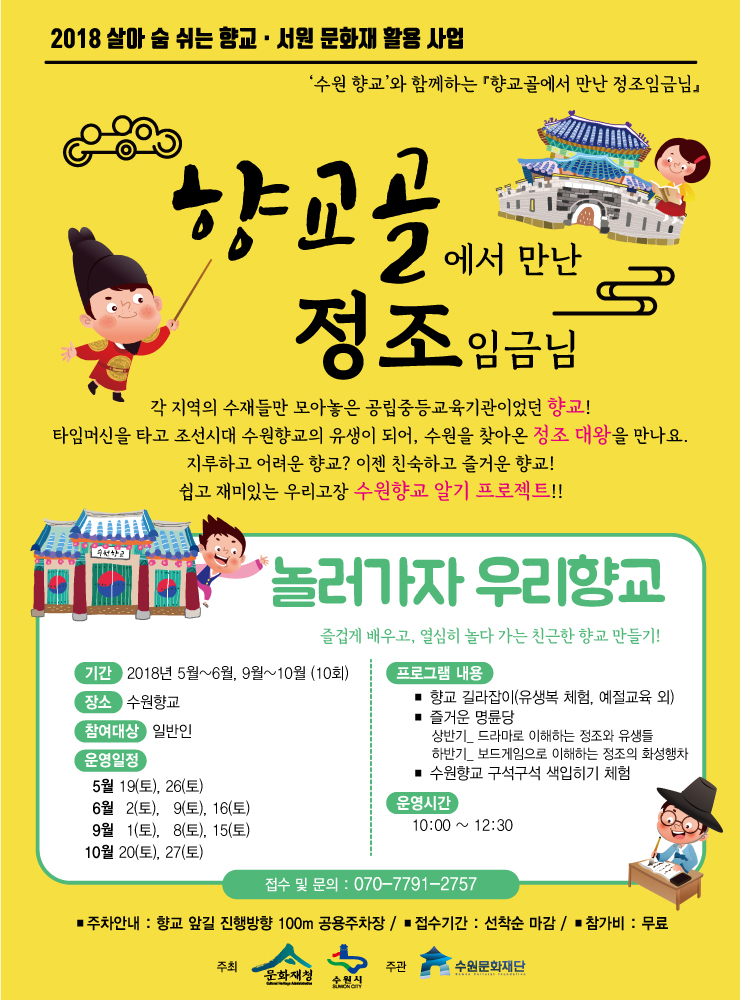 타임머신을 타고 조선시대 수원향교의 유생이 되어, 수원을 찾아온 정조 대왕을 만나요