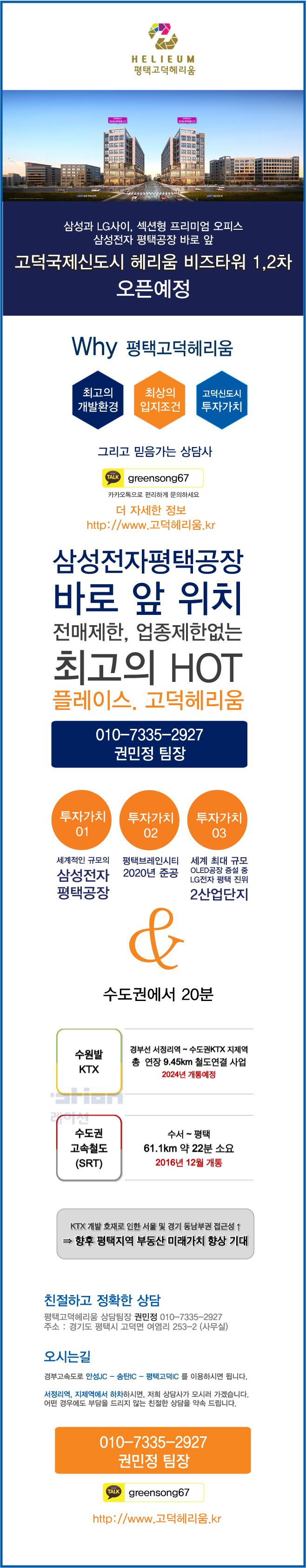 삼성전자 평택 공장 바로 앞 헤리움비즈타워 오픈예정