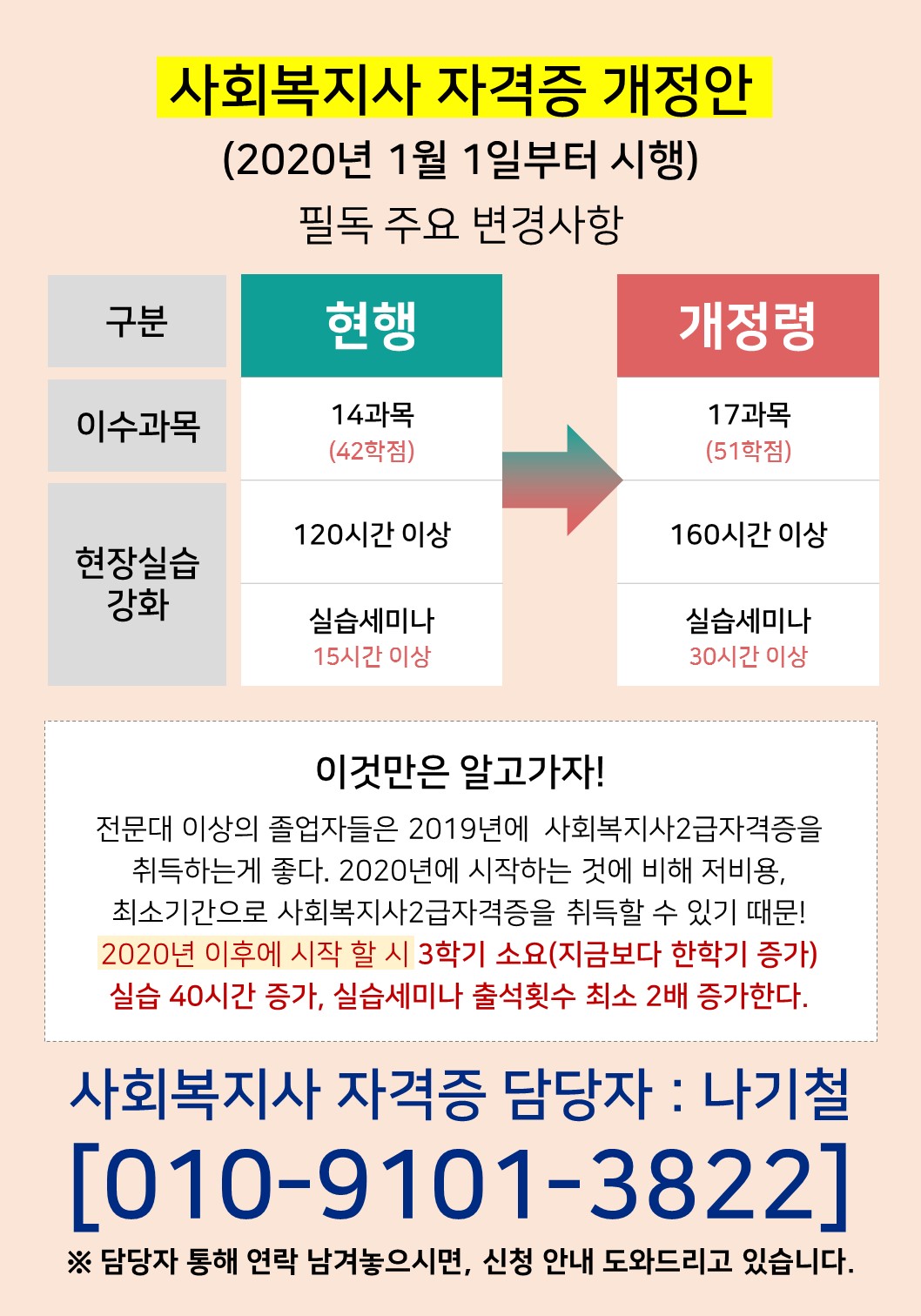 ▶ 2020년도 사회복지사 2급 취득법 개정 예정 ◀