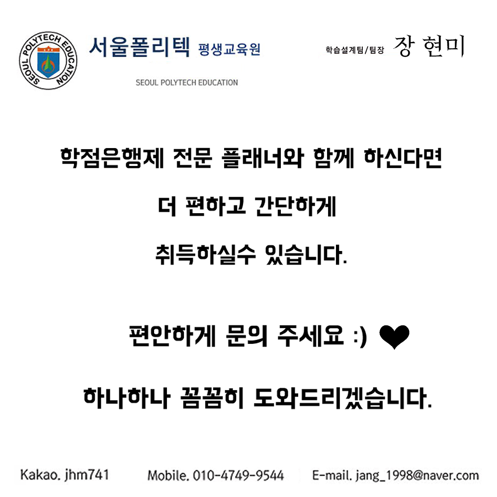 서울폴리텍 평생교육원 장현미입니다.