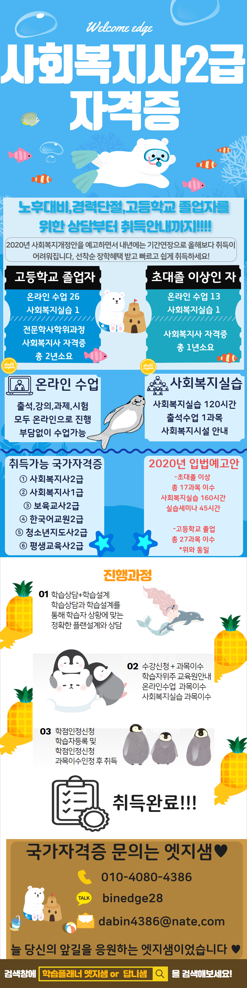 게시판 취지와 관계없는 불법정보 게시, 타인 비방, 광고성 글 등은 예고없이 삭제될 수 있습니다. ★ 추석맞이 특별장학혜택!! ★사회복지사 2급 자격증!! 고졸도 가능!! 특별장학혜택!!★ 작성자1 조다빈 작성일 2019년 9월 5일 14시 28분 43초 조회 77 2.png [ Size : 697.22KB, Down : 62 ] 미리보기 다운로드 ㄴㄹㄴㅇㅁㄴㅇㄹ 목록보기