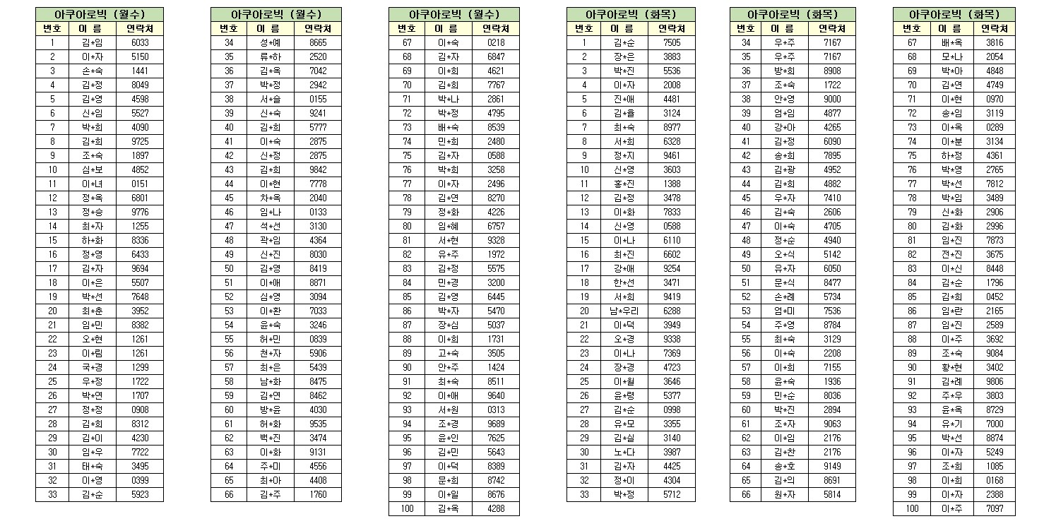 2024년 6월 14일 18시 기준 수영 프로그램 대기자 현황입니다. 대기자 강습 순번도래자 및 등록날짜, 결제방법 등의 자세한 사항은 정보마당 → 공지사항을 통해 안내해드리오니 확인 부탁드립니다.