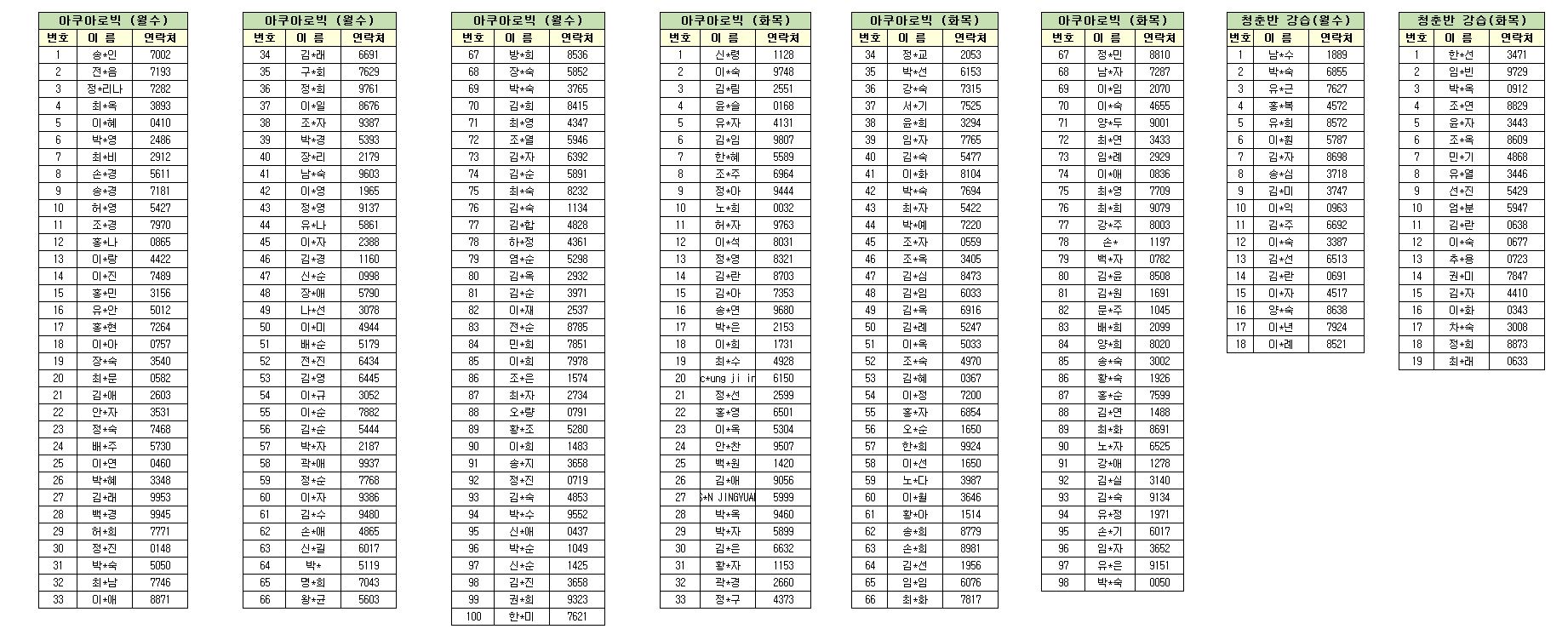 - 중복접수는 불가합니다. 따라서 이미 수영강습을 받고 있는 회원이나 이미 다른 강습반에 대기 중인 회원은 대기가 불가합니다.