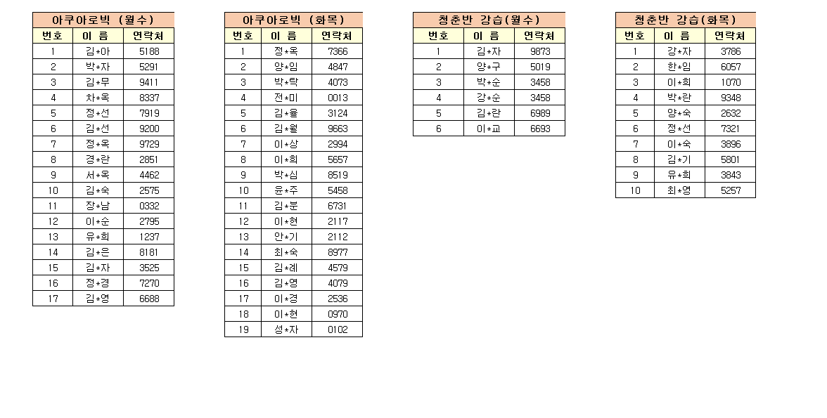 - 중복접수는 불가합니다. 따라서 이미 수영강습을 받고 있는 회원이나 이미 다른 강습반에 대기 중인 회원은 대기가 불가합니다.